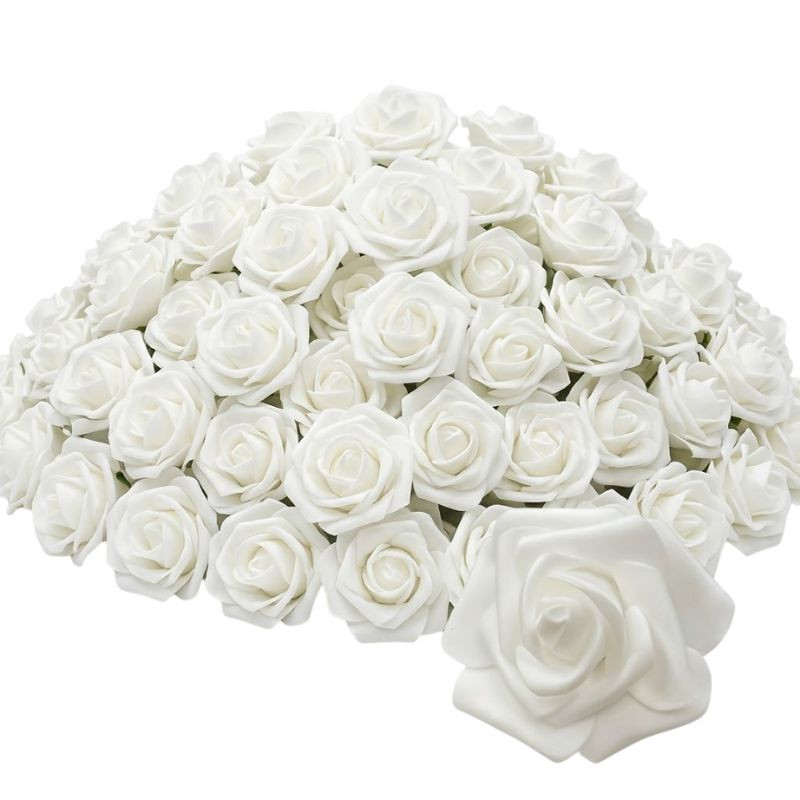 Prémiová sada dekoratívnych bielych umelých ružových hláv – balenie po 100 kusoch 52M1G56899