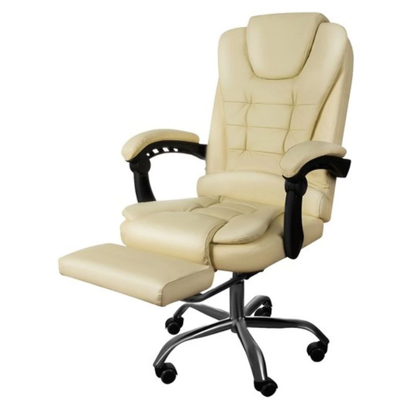 Prémiová krémová kancelárska stolička – Vysúvateľná opierka nôh a relaxačná funkcia 23287