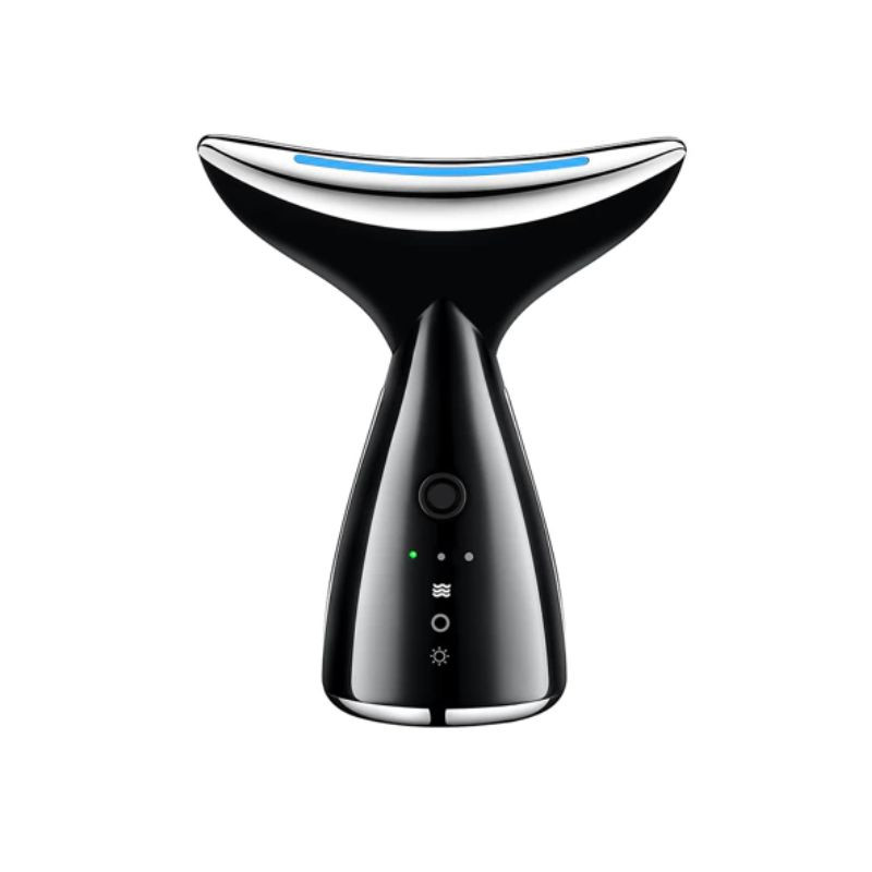 Tento elegantný čierny prístroj kombinuje modernú EMS (elektrickú stimuláciu svalov) s vibračnou masážou, aby efektívne zlepšil pevnosť pleti priamo v pohodlí domova. Jeho špeciálny, "delfínový" tvar bol navrhnutý tak, aby dokonale kopíroval línie krku a tváre, čím účinne bojuje proti vráskam a účinkom gravitácie.