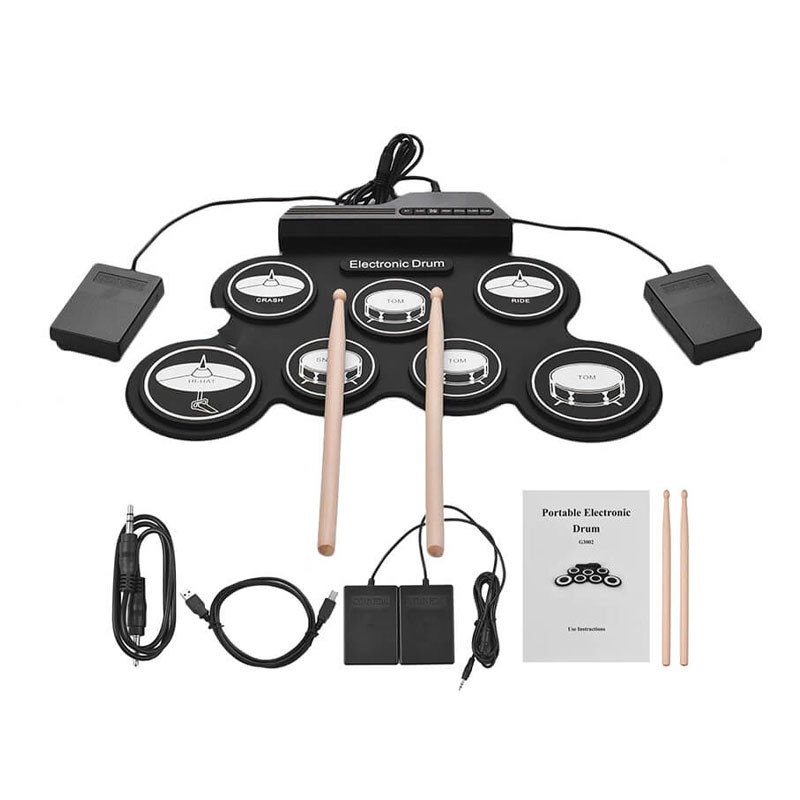 Prenosná elektronická bicí sada vám umožňuje cvičiť kdekoľvek a kedykoľvek bez toho, aby ste niekoho rušili. Na cvičenie si môžete vybrať z 5 rôznych zvukových profilov a 8 demo melódií.