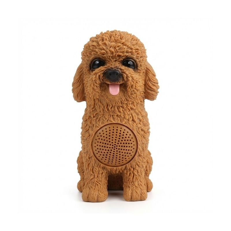 Miluješ psov aj hudbu? Tento reproduktor v tvare hnedého pudla je dokonalou kombináciou oboch. Vďaka detailnému spracovaniu má „srsť“ textúru a tvár priateľský výraz, takže aj keď je vypnutý, skvele poslúži ako dekorácia na poličke alebo pracovnom stole.