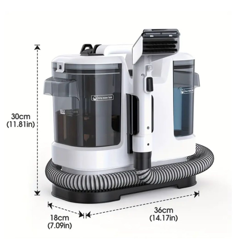 Tento kompaktný a účinný prenosný čistiaci prístroj MIUZZY je ideálnou voľbou na dôkladné čistenie kobercov, čalúnenia, autosedadiel, pohoviek a ležadiel, najmä pre domácnosti so zvieratami. Silný sací výkon 13500 Pa odstraňuje nečistoty a škvrny bez použitia chemikálií, pričom dvojitý systém nádrží zabezpečuje oddelenie čistej a znečistenej vody pre hygienické čistenie.