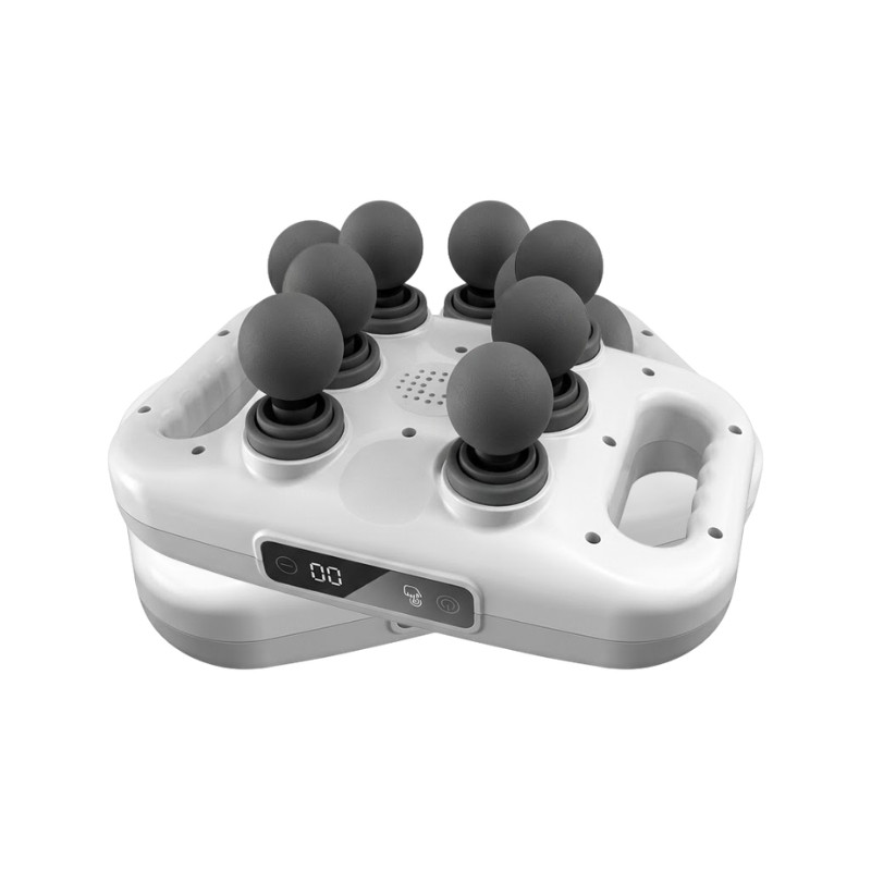 Tento inovatívny masážny prístroj typu S2 je vybavený šiestimi profesionálnymi masážnymi hlavicami, ktoré pôsobia súčasne s cieľom uvoľniť hlbšie svalové tkanivá. Prístroj spája modernú technológiu s pohodlím, čím je vynikajúcou voľbou pre športovcov alebo na uvoľnenie každodenného svalového napätia.