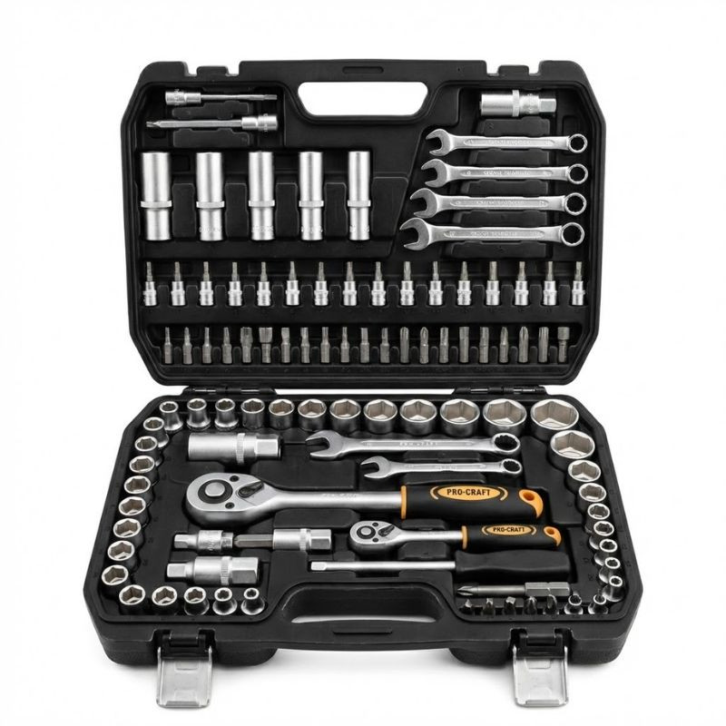 ProCraft WS-108 je komplexná sada 108-dielneho náradia a kľúčov, ktorá bola navrhnutá špeciálne pre profesionálne použitie, opravy automobilov a všeobecné montážne práce. Sada obsahuje najobľúbenejšie 1/4" a 1/2" náradie, a to všetko v mimoriadne odolnej taške s kovovými sponami, ktorá zaisťuje prehľadné usporiadanie a ľahkú prenosnosť.