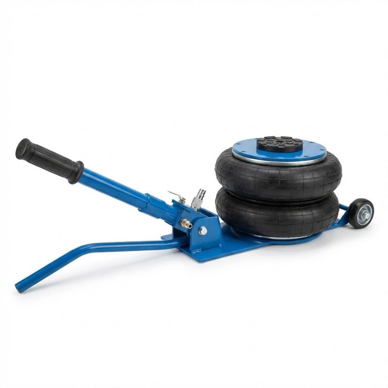 Ak zdvihák s nosnosťou 3,5 tony nestačí, tu je riešenie: pneumatický zdvihák s nosnosťou 6 ton. Tento robustný, modrý prístroj je špeciálne navrhnutý pre rýchle a bezpečné zdvíhanie väčších vozidiel, SUV, malých nákladných áut a dodávok. Technológia stlačeného vzduchu odľahčuje fyzickú námahu a výrazne urýchľuje výmenu kolies alebo servisné práce.