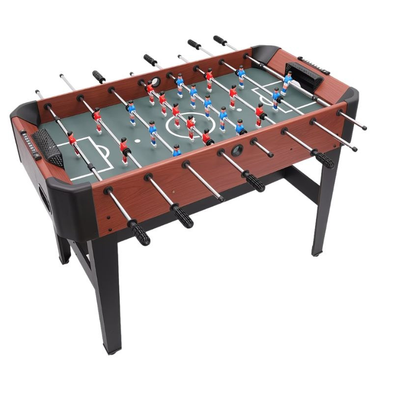 Vylepšite svoj herný zážitok na profesionálnu úroveň s týmto robustným, samostatne stojacim stolným futbalovým stolom! Či už ide o stretnutie priateľov, klubovú miestnosť alebo intenzívnu domácu súťaž, tento stôl splní všetky vaše potreby vďaka svojej stabilite a oficiálnemu dizajnu. Odolná povrchová úprava s dreveným vzorom a robustné čierne nohy sú nielen esteticky príťažlivé, ale poskytujú aj potrebnú stabilitu počas najintenzívnejších zápasov.