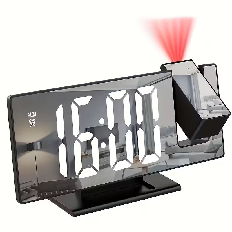 Tento moderný projektorový budík posúva čítanie času na novú úroveň: pomocou vstavaného projektora premieta aktuálny čas priamo na stenu alebo strop, takže je pohodlne viditeľný aj v ľahu.