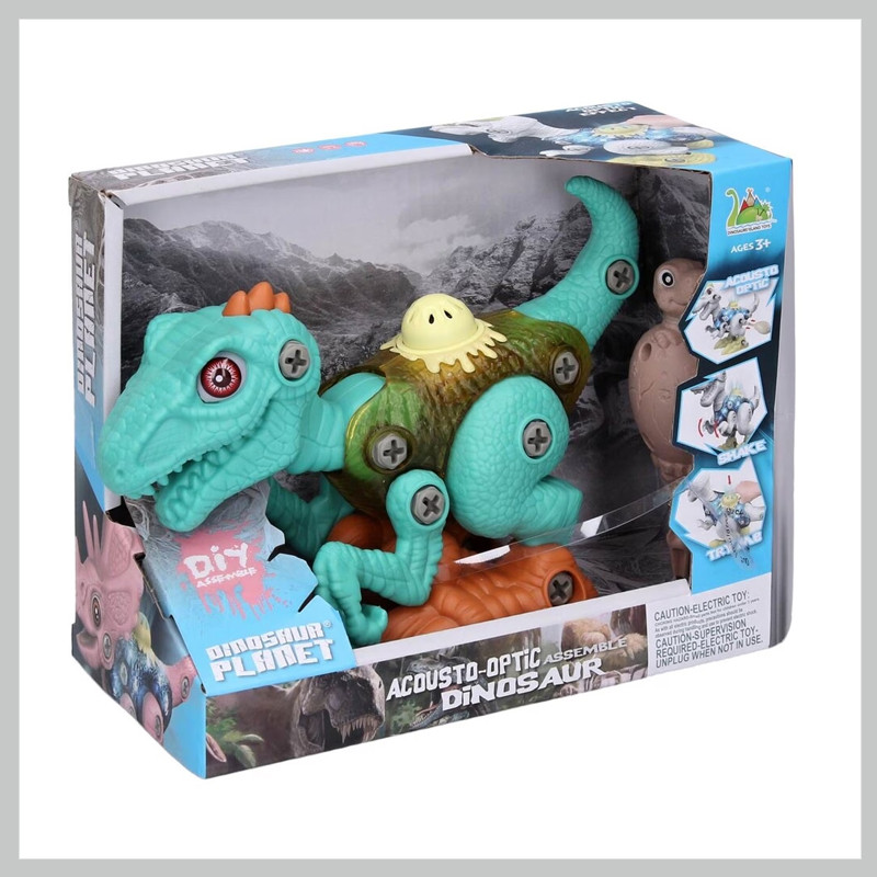 Ak stlačíte tlačidlo na zadnej strane, vydáva zvuky a bliká. Súčasťou balenia je dinosaurus a skrutkovač. 2x1,5V batérie AG13/LR44 sú súčasťou balenia.