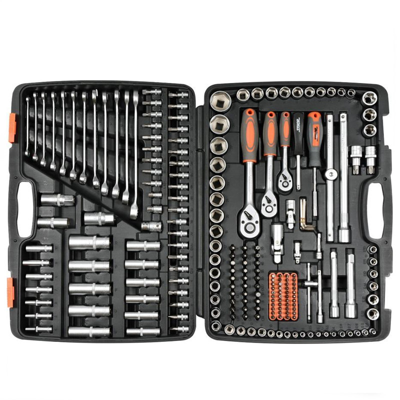 Univerzálna sada nástrčných kľúčov pre 1/2", 3/8" a 1/4" s celkovo 216 kusmi nástrojov: nástrčné kľúče, bity, predlžovacie nadstavce a račne s plastovou rukoväťou. Vyrobená z kvalitnej ocele CrV 50BV30 a vybavená systémom AS-DRIVE.