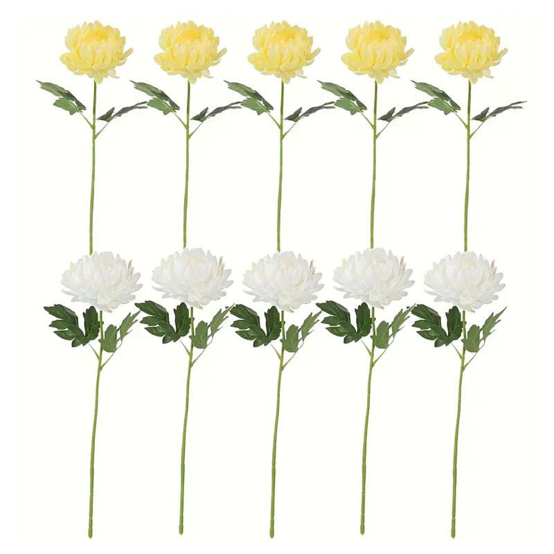 Balenie: 10 kusov umelých kvetinových stoniek, 5 žltých a 5 bielych