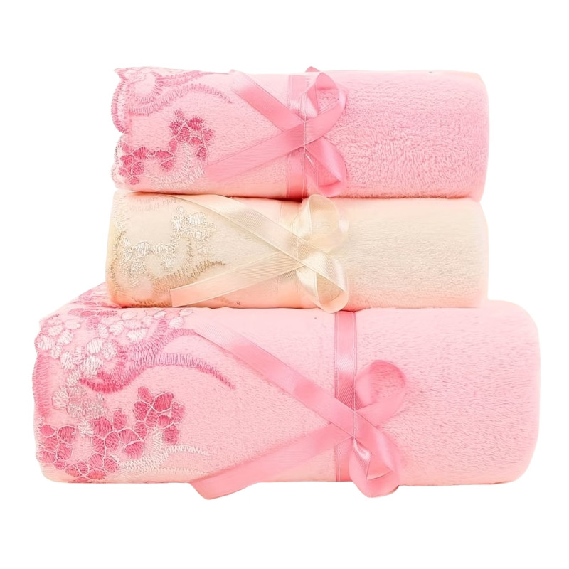 Sada 3 ks ručníkov s čipkou – ružová a biela XK270787-3