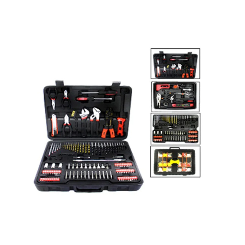 -Súprava obsahuje rôzne vrtáky, bitové nástavce, nástrčné kľúče, skrutkovače, kliešte, kladivo, vodováhu, bočné kľúče, základné spojovacie prvky a mnoho ďalších nástrojov.