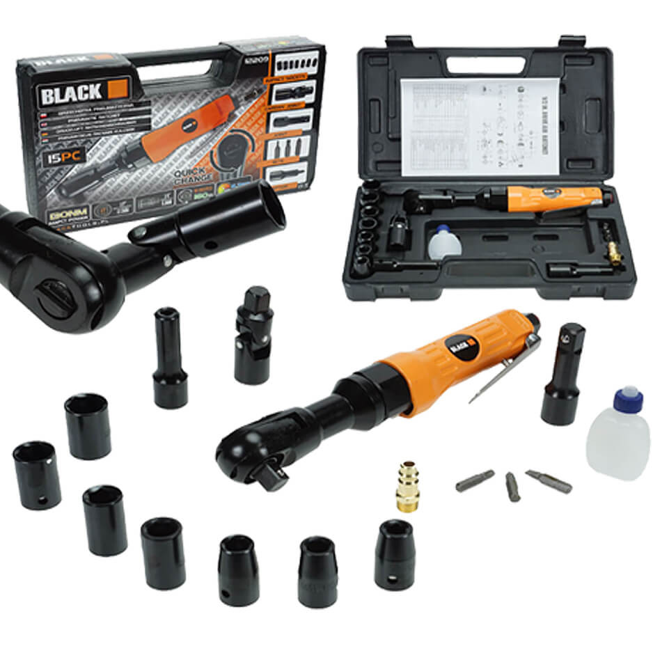 Sada čiernych pneumatických račňových kľúčov, 15 kusov – 12209