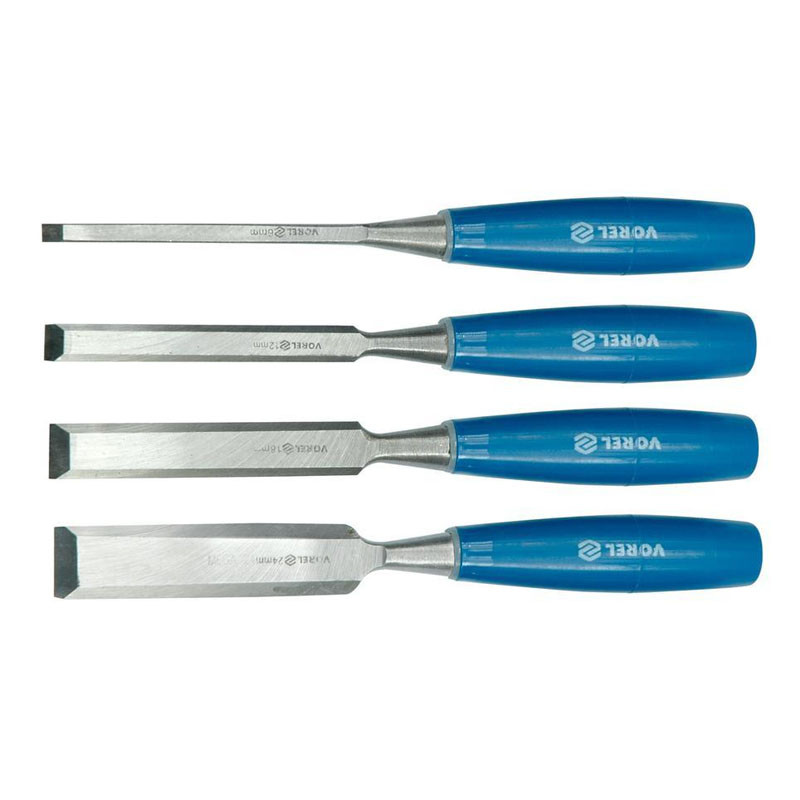 Čepele dlát sú vyrobené z vysoko kvalitnej CrV ocele. Jednotlivé nástroje majú rôznu šírku: 6 mm, 12 mm, 18 mm a 24 mm.