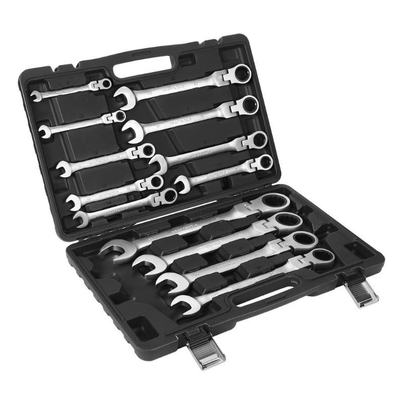 Táto 13-dielna sada hviezdicových kľúčov je ideálnou voľbou pre montážne, údržbárske a opravárske práce v dielni alebo v domácnosti. Mechanizmus s račňou výrazne urýchľuje prácu, zatiaľ čo sklopná hlava umožňuje efektívne použitie aj na ťažko prístupných miestach.