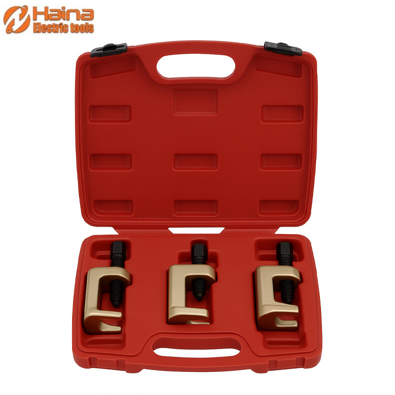 Tento nástroj je ideálnou voľbou pre rýchle a presné odstraňovanie a inštaláciu guľových hláv, čím zabezpečuje stabilnú a presnú prácu. Táto sada lisovacích nástrojov na guľové hlavy Haina obsahuje 3 nástroje, všetky vyrobené z vysoko kvalitnej ocele, čo zaručuje dlhú životnosť a odolnosť. Presný dizajn nástrojov umožňuje presnú a bezpečnú prácu pri demontáži a montáži guľových hláv. Sada lisovacích nástrojov na guľové kĺby MG50441 je ideálnou voľbou pre profesionálnych mechanikov aj nadšencov domáceho majstrovania, ktorí hľadajú spoľahlivé a odolné nástroje na údržbu a opravu guľových kĺbov. Tento produkt Haina zaručuje, že vaša práca bude vždy vykonaná na najvyššej úrovni.