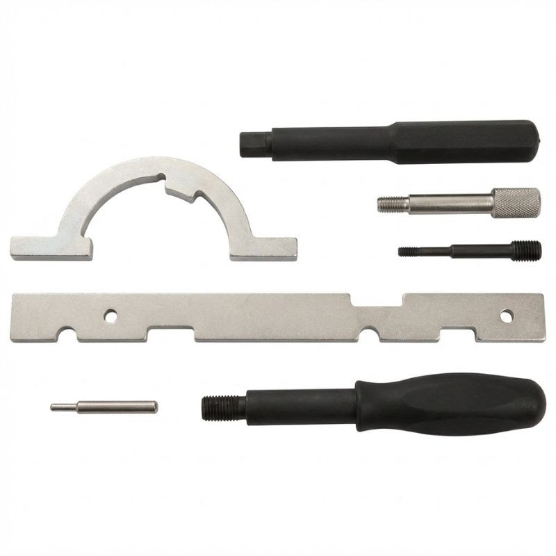 Kompletné riešenie: Set obsahuje pravítko na fixáciu vačkového hriadeľa, čap na kľukový hriadeľ, čap na fixáciu napínača reťaze a nástroj na nastavenie vačkového hriadeľa.