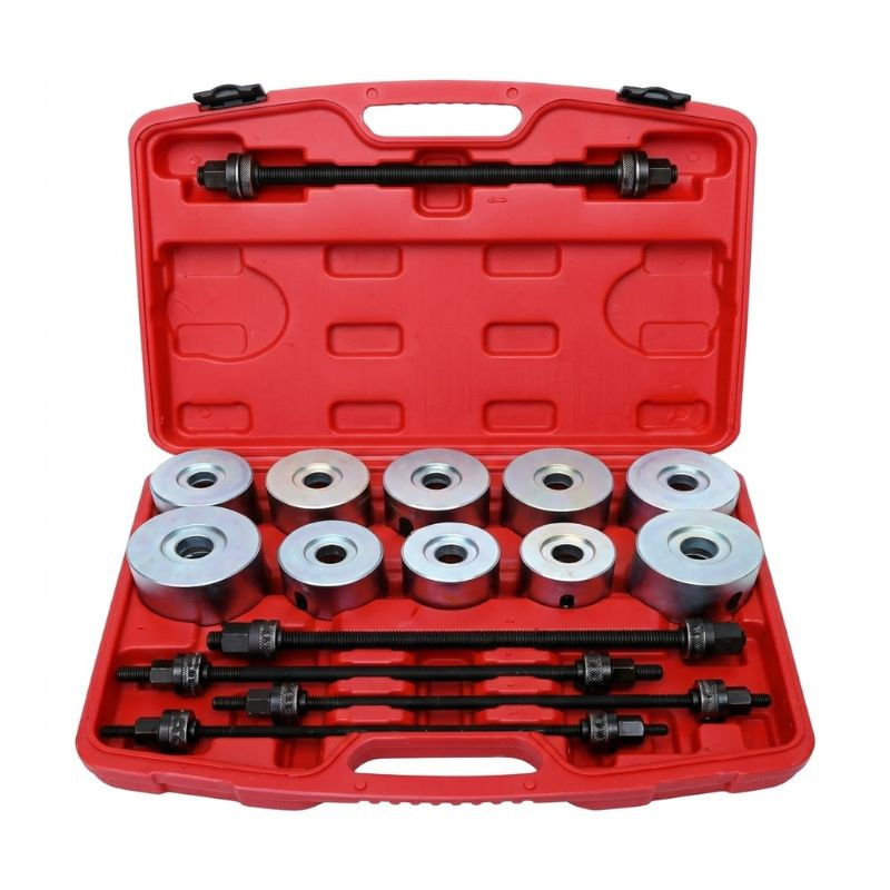 Nástroje s robustnou konštrukciou sú ideálne na presnú a bezpoškodenú demontáž a montáž ložísk, silentblokov a puzdier v motorových vozidlách. Súčiastky sú uložené v odliatom, odolnom červenom plastovom kufríku, ktorý zabezpečuje prehľadné uskladnenie a ľahkú prenosnosť.