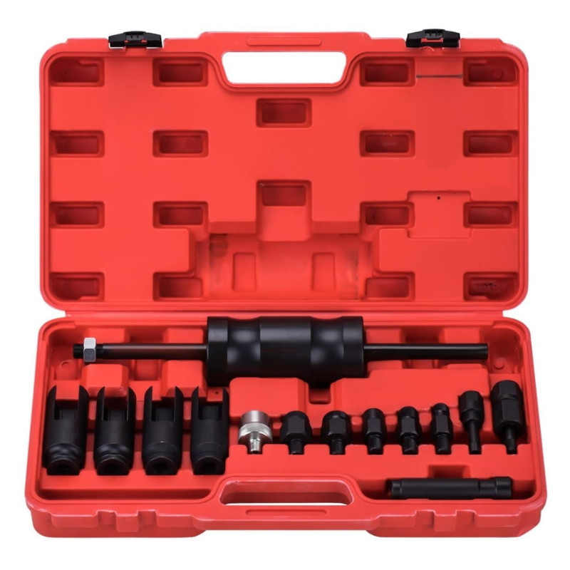 Sada je kompatibilná s najpopulárnejšími vstrekovacími systémami, ako sú Bosch, Delphi, Denso a Siemens. Masívny vyťahovač (posuvný kladivo) umožňuje rýchle a bezpečné odstránenie zaseknutých vstrekovačov bez poškodenia motora.