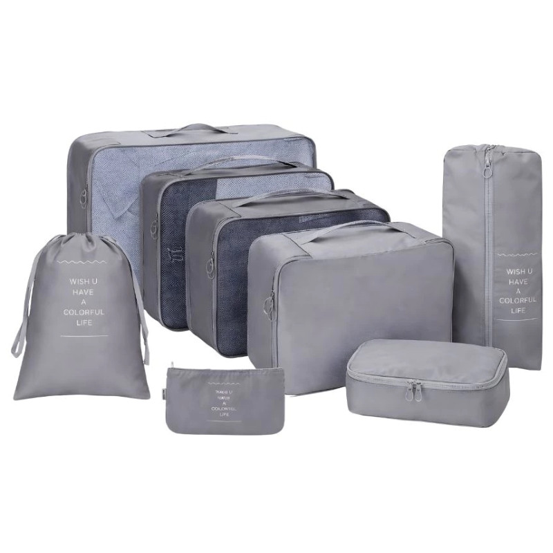 Táto 7-dielna sada na organizáciu batožiny je ideálnou voľbou na cestovanie, ktorá pomáha prehľadne a usporiadane baliť oblečenie a doplnky. Úložné vrecká rôznych veľkostí umožňujú praktické usporiadanie batožiny.