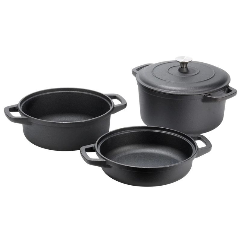 Táto robustná sada riadu CAST LINE v čiernej farbe je skutočným ťažkotonážnym šampiónom v kuchyni. Vynikajúca schopnosť liateho železa udržať a rozvádzať teplo zaručuje, že sa jedlá pečú a varia rovnomerne, pričom si zachovávajú všetky cenné chute a vône. Či už ide o dusené mäso pripravované na pomalom ohni, krehké pečené mäso alebo čerstvo upečený domáci chlieb, táto sada je pripravená na každú úlohu.