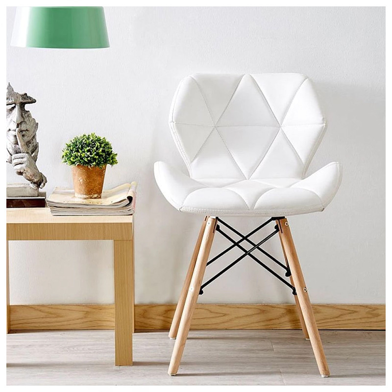Škandinávska kuchynská stolička – drevená konštrukcia, biele ekokožené čalúnenie 073M