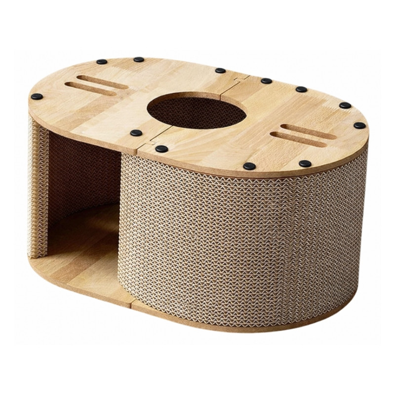 Masívna konštrukcia je vyrobená z vysoko pevného vlnitého kartónu a pevnej základnej dosky, čo zaručuje stabilné používanie. Je vyrobená z ekologického materiálu, takže je bezpečnou voľbou pre domáce zvieratá.