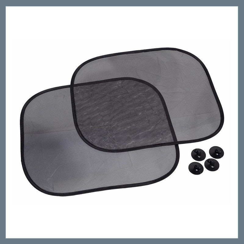 Praktická a ľahko použiteľná sada slnečných clôn obsahujúca dve slnečné clony, ktoré sa dajú pripevniť pomocou prísaviek. Ideálne riešenie na ochranu pred slnečným žiarením, najmä pre pohodlie zadných pasažierov.