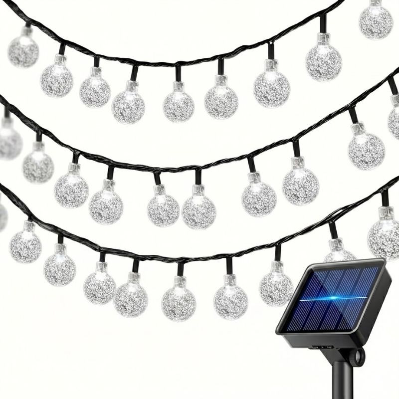 Vyhotovenie: K dispozícii je aj verzia so 100 žiarovkami a dĺžkou 12 metrov, s odolným tmavým káblom a solárnym panelom, ktorý obsahuje aj inteligentný svetelný senzor.