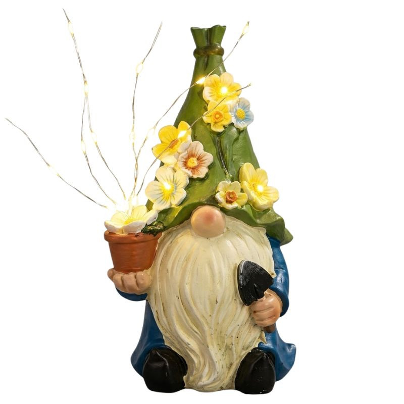 Solárna záhradná dekorácia v podobe trpaslíka môže byť príjemným a efektným doplnkom do záhrady, na terasu alebo do dvora. Dekorácia znázorňuje milého trpaslíka, ktorý drží malý stromček zdobený kvetinami, medzi ktorého vetvami svietia drobné svetielka, ktoré po zotmení vytvárajú príjemné atmosférické osvetlenie.