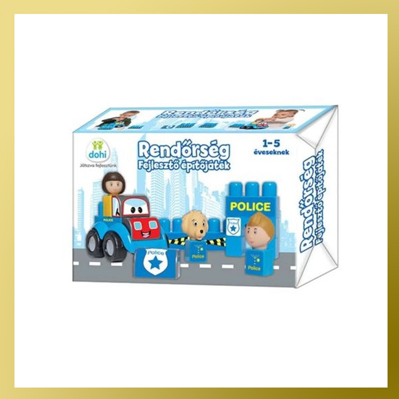 Súprava polície obsahuje detské figúrky a stavebné kocky na stavbu policajnej stanice. Kocky a figúrky sú navrhnuté pre malé detské ruky, ľahko sa s nimi manipuluje a podporujú manuálnu zručnosť a logické myslenie.