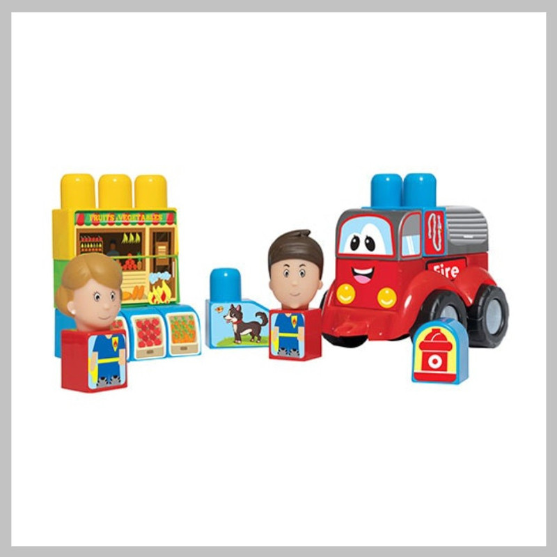 Stavebnicová sada Hasiči 095252 Táto skvelá stavebnicová sada je vhodná pre deti od jedného roka. Stavebnicová sada umožňuje aj tým najmenším deťom hrať sa na hasičov s pomocou kociek. Balenie obsahuje hasičské auto, figúrky hasičov a obchod s ovocím a zeleninou. Stavebnicu sme navrhli špeciálne pre malé deti, preto obsahuje veľké kocky, ktoré deti ľahko uchopia a nemajú s nimi žiadne problémy pri skladaní. Puzzle rozvíja motorické zručnosti a predstavivosť. Umožňuje deťom hrať sa na zábavné detské príbehy.
