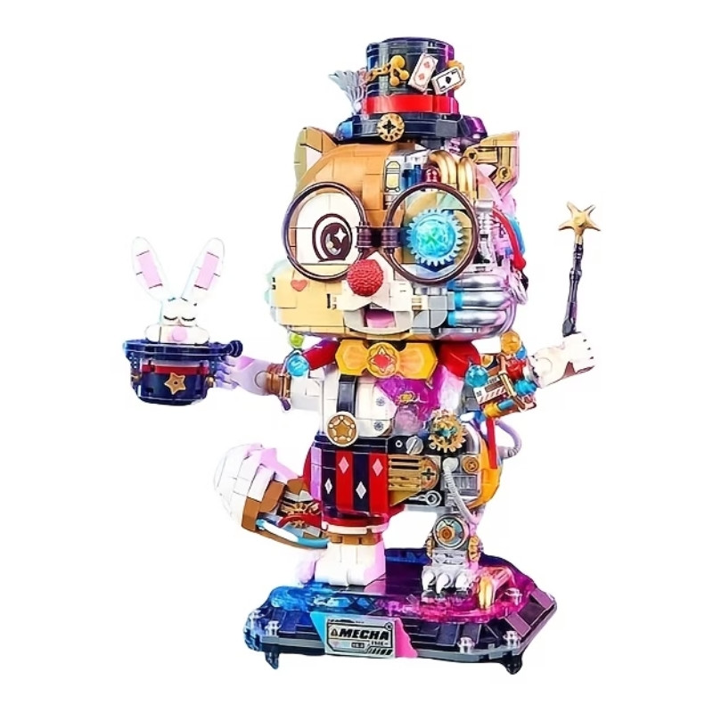 Táto jedinečná stavebnicová sada znázorňuje špeciálnu figúrku čarodejníckej veveričky v mechanickom štýle, ktorá spája futuristické a rozprávkové prvky. Detailné vyhotovenie, dekorácie pripomínajúce ozubené kolesá a farebné doplnky dodávajú stavbe výnimočný charakter.