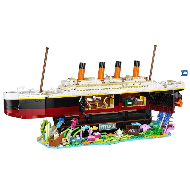Táto jedinečná stavebnicová sada znázorňuje slávny oceánsky parník Titanic v detailnom prevedení. Ikona lodného trupu, štyri komíny a klasické tvary lode vytvárajú impozantnú stavbu, ktorá pripomína jednu z najznámejších lodí histórie.