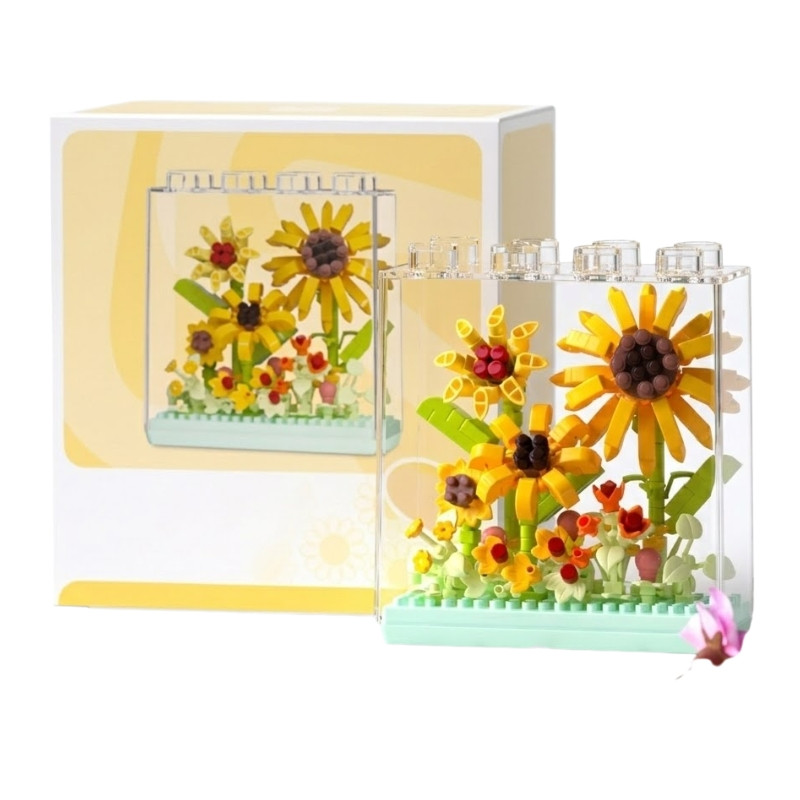 Stavebnicová sada slnečnicových kvetov v priehľadnej vitríne KA339561-2