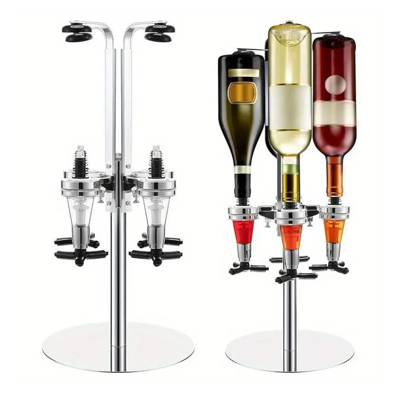 Tento otočný stojan na dávkovanie nápojov z nehrdzavejúcej ocele je ideálnou voľbou na domáce párty, do barov alebo do domáceho minibaru. Stojan umožňuje súčasné upevnenie 4 fliaš, pričom každú z nich možno samostatne presne dávkovať pomocou dávkovacej páky. Otočná konštrukcia okolo centrálnej osi zabezpečuje jednoduchý prístup ku každému nápoju.