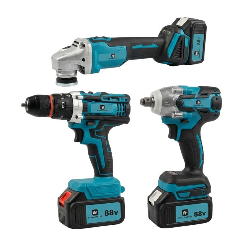 Kompletná súprava akumulátorového náradia 88 V s vysokým výkonom, vrátane rázového skrutkovača, uhlovej brúsky a vŕtačky/skrutkovača, čo z nej robí ideálnu voľbu pre všetky vaše domáce projekty.