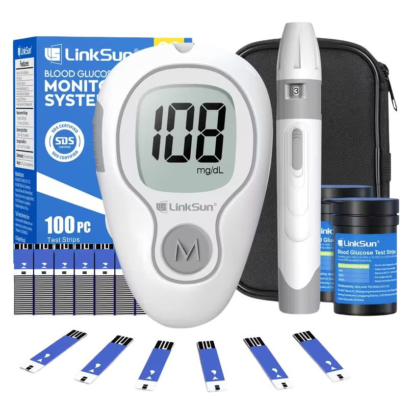 Táto kompaktná súprava na meranie hladiny cukru v krvi určená na domáce použitie poskytuje spoľahlivé a rýchle riešenie na kontrolu hladiny glukózy. Merací prístroj Linksun disponuje technológiou „No Coding“ (bez kódovania), ktorá zjednodušuje používanie a zobrazí presný výsledok už za 5 sekúnd. Balenie obsahuje aj 100 testovacích prúžkov a odberové pero, takže ponúka komplexné riešenie na každodenné merania.