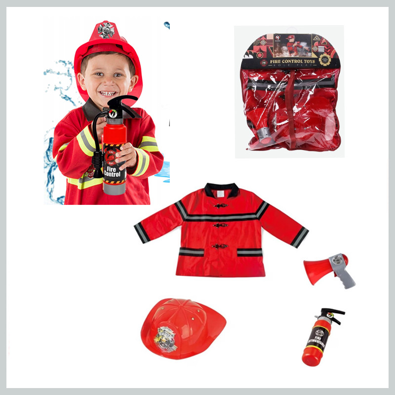 Súprava hasiča s uniformou. Balenie obsahuje: uniformu, hák, prilbu, hasiaci prístroj, megafón (nefunguje na batérie a bez efektov). Odporúčaný vek: 3+ roky