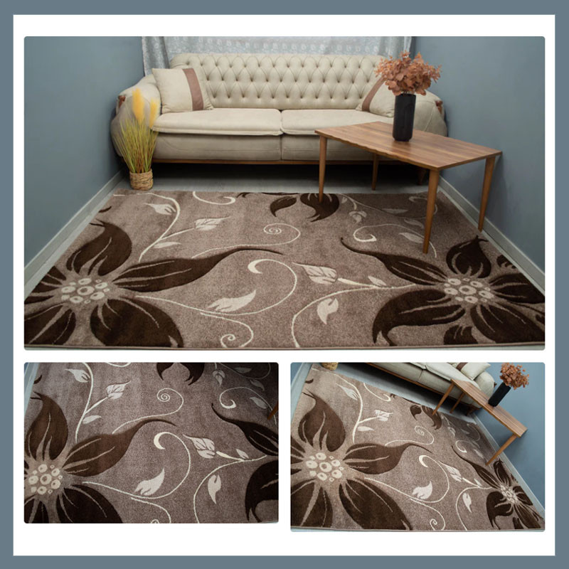 Súprava kobercov Eylül s kávovo-hnedým kvetinovým vzorom 01203D-KAHVE-BARNA-SZETT1