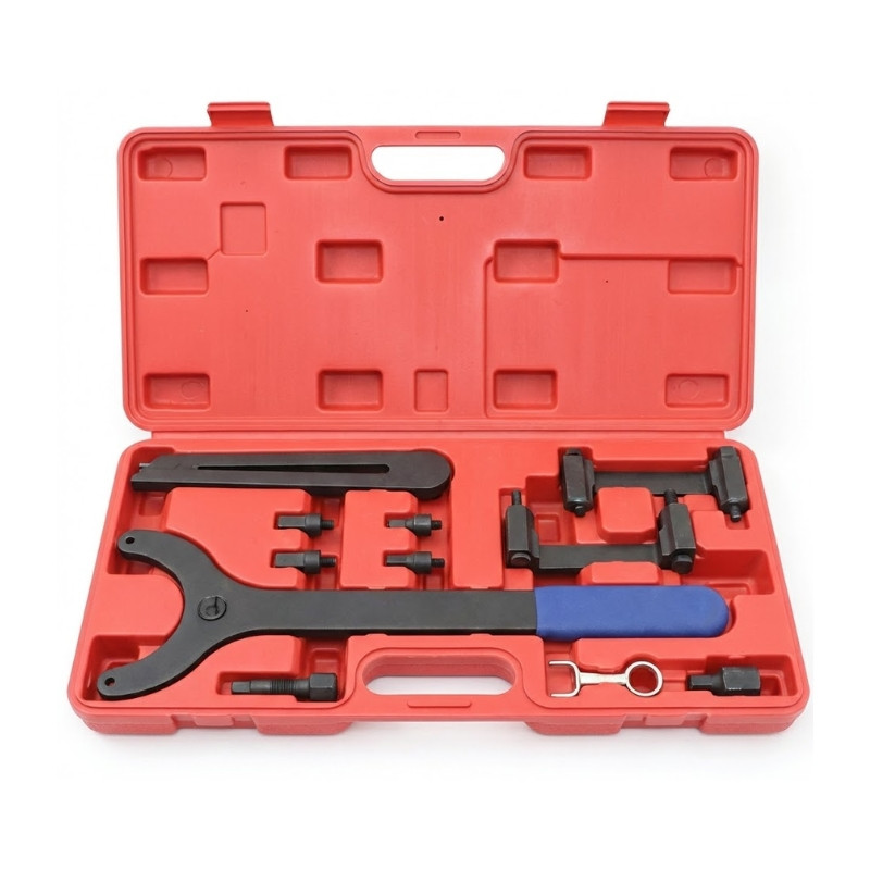 Profesionálna súprava náradia, ktorá umožňuje presné blokovanie motorov skupiny Audi a Volkswagen (VW) a bezpečné protibežné otáčanie vačkového hriadeľa. Ideálna na výmenu vačkových hriadeľov, kontrolu časovania a opravy motorov. Použiteľnosť Nastavenie a upnutie vačkových hriadeľov v benzínových a naftových motoroch koncernu Audi a VW. Hlavné vlastnosti >Upevňovacie jednotky