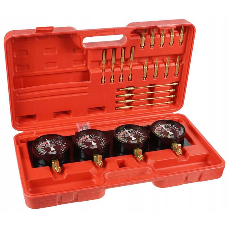 Manometre zahrnuté v súprave na synchronizáciu karburátora BLACK sú pevne namontované, čo vám umožňuje merať nielen tlak, ale aj podtlak. Naštartujte motor a nechajte zábavu začať. Pomocou prietokových ventilov nižšie môžete ľahko nastaviť intenzitu vibrácií meradiel.