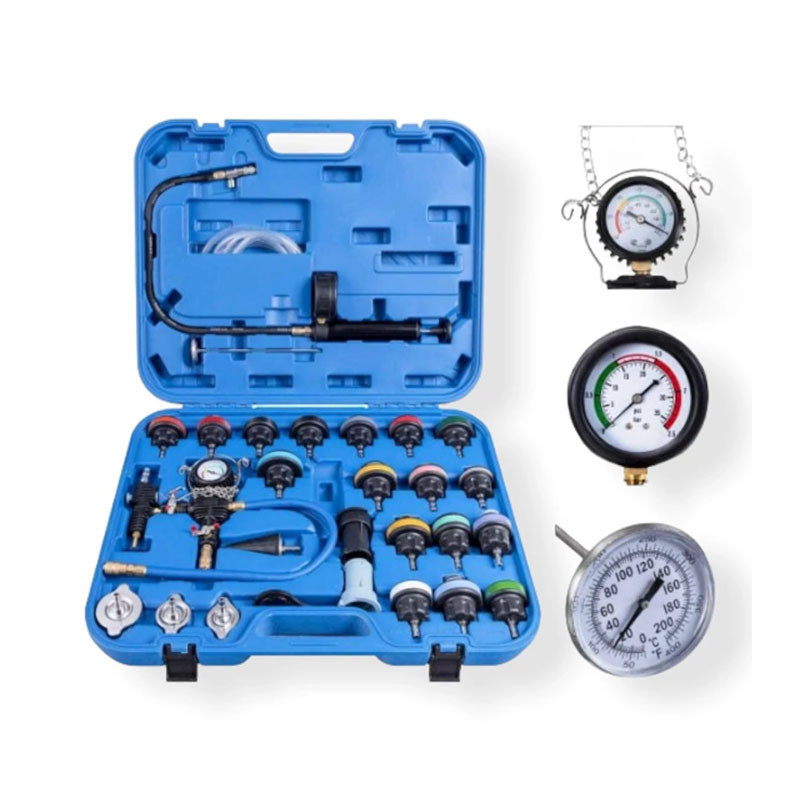 Sada na testovanie tesnosti chladiaceho systému KrafTech HA-1384 je univerzálna 28-dielna sada náradia navrhnutá špeciálne na testovanie tlaku a vákuové doplňovanie automobilových chladiacich systémov. Nástroje sú vyrobené z vysoko kvalitných kovových a plastových komponentov, ktoré zaručujú dlhú životnosť a spoľahlivý výkon. Sada obsahuje všetko potrebné príslušenstvo na testovanie tlaku chladiaceho systému a vákuové doplňovanie chladiacej kvapaliny. Kompaktný a ľahko použiteľný dizajn umožňuje rýchlu a efektívnu prácu. Sada je dodávaná v odolnom plastovom kufríku pre jednoduché skladovanie a prepravu.