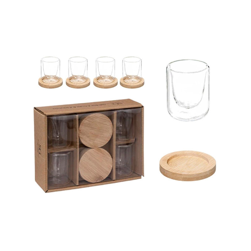 Súprava pohárov z dvojitého skla s bambusovými podložkami – 4 kusy 191-0176954