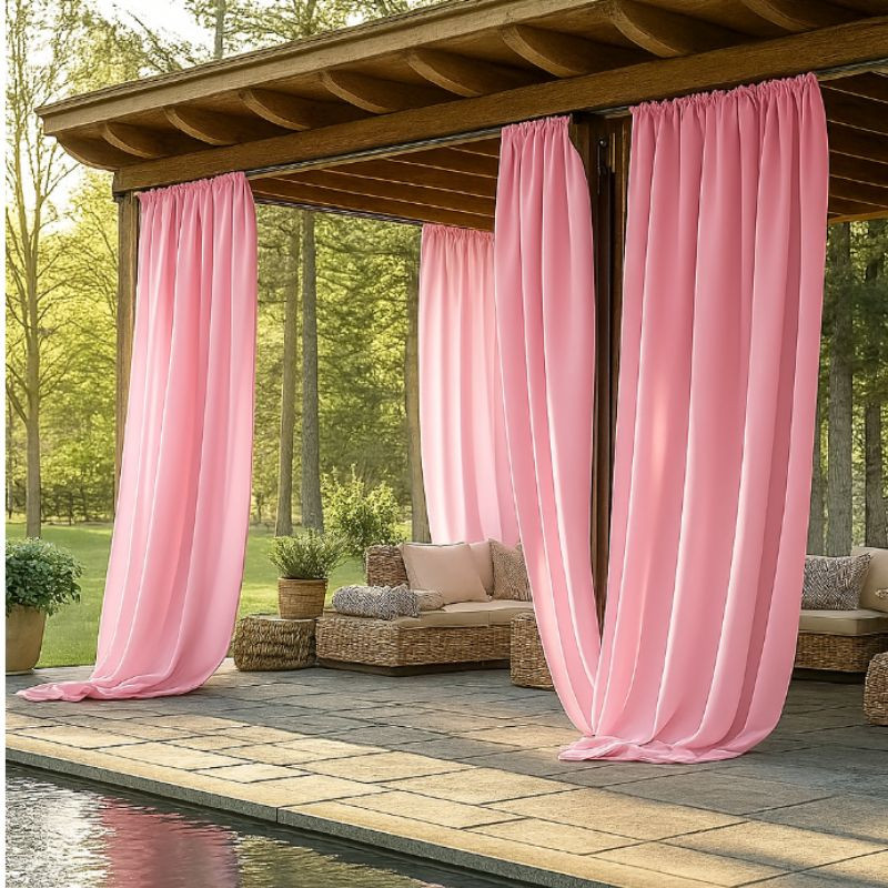 Tieto štýlové, svetlé závesy sú ideálnou voľbou pre pergoly, terasy alebo záhradné oddychové zóny. Hrubá, ale mäkká tkanina poskytuje účinný tieň a zároveň vytvára intímnu, elegantnú atmosféru vo vašom vonkajšom priestore.