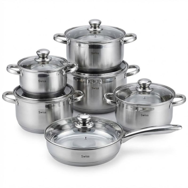 Vymeňte svoj starý, opotrebovaný riad za túto žiarivú 12-dielnu sadu Swiss Zurich! Model ZL12 bol vyrobený v duchu „Royal Quality“: je z vysokokvalitnej nehrdzavejúcej ocele (INOX), ktorá je nielen odolná a hygienická, ale stane sa aj ozdobou každej kuchyne.