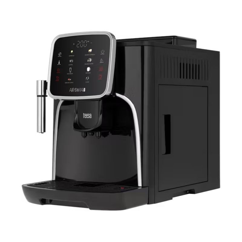 Automatický espresso kávovar Teesa AROMA 750 prináša prémiový kávový zážitok priamo k vám domov. Vďaka intuitívnemu dotykovému panelu, presnej regulácii teploty a výkonnému 1450 W motoru si rýchlo a jednoducho pripravíte perfektnú kávu, espresso aj mliečne nápoje. Integrovaná naparovacia tryska umožní za chvíľu vytvoriť zamatovú mliečnu penu na cappuccino alebo latte.