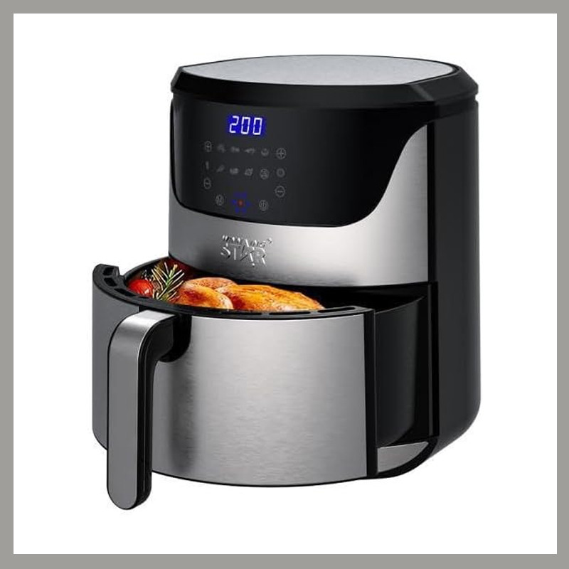 Táto teplovzdušná fritéza s objemom 7 litrov je ideálnou voľbou pre väčšie domácnosti. Umožňuje pripraviť chrumkavé a zdravšie jedlá s minimom alebo bez použitia oleja. Digitálny dotykový panel ponúka viacero prednastavených programov, takže požadovaný výsledok dosiahneš rýchlo a pohodlne.