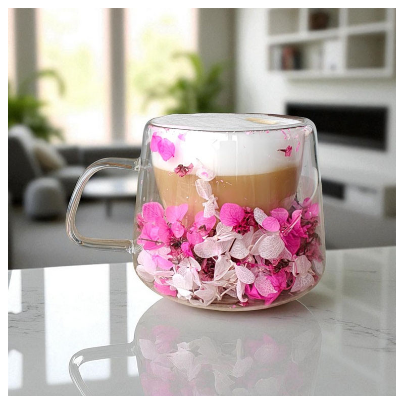 Vyhotovenie: dvojstenný termo pohár s kvetinovou dekoráciou