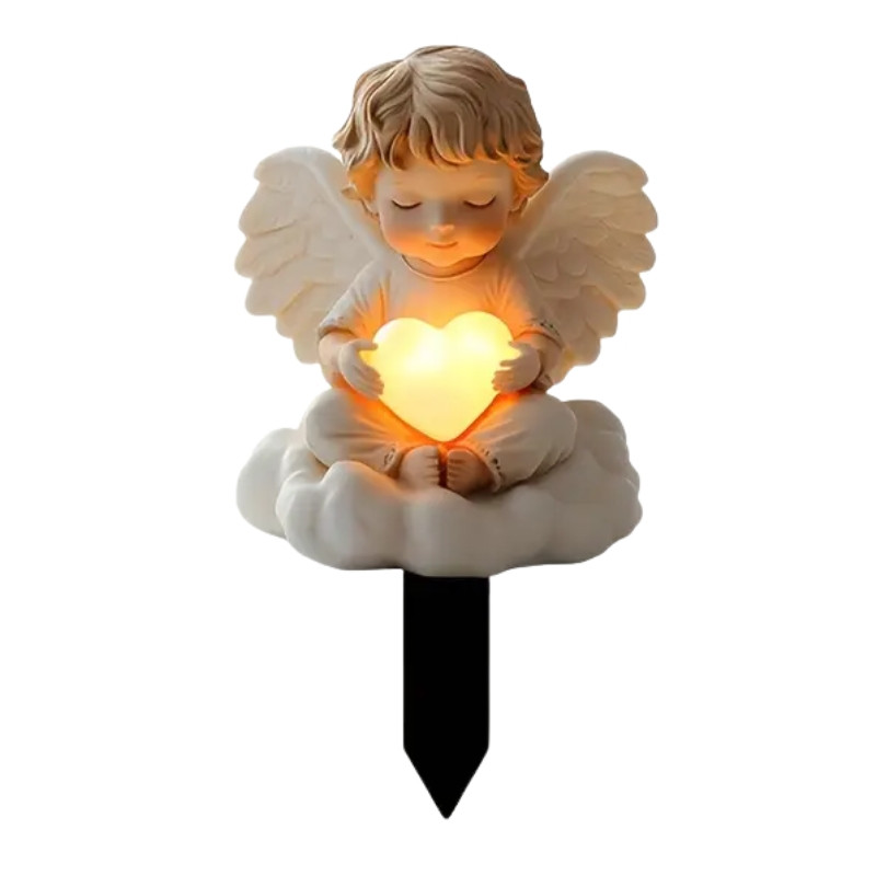 Táto dekorácia anjela s pokojnou atmosférou a svetelným srdcom je dôstojným spôsobom, ako si uctiť pamiatku blízkych. Je vyrobená z materiálu odolného voči poveternostným vplyvom, takže sa dá používať počas celého roka v záhrade, na cintoríne alebo v spomienkovej záhrade. Bezplameňový zdroj svetla v tvare srdca predstavuje bezpečnú alternatívu ku sviečkam a vyžaruje pokoj aj trvalú spomienku.